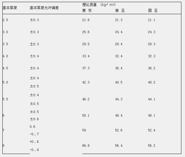 花紋板理論重量表
