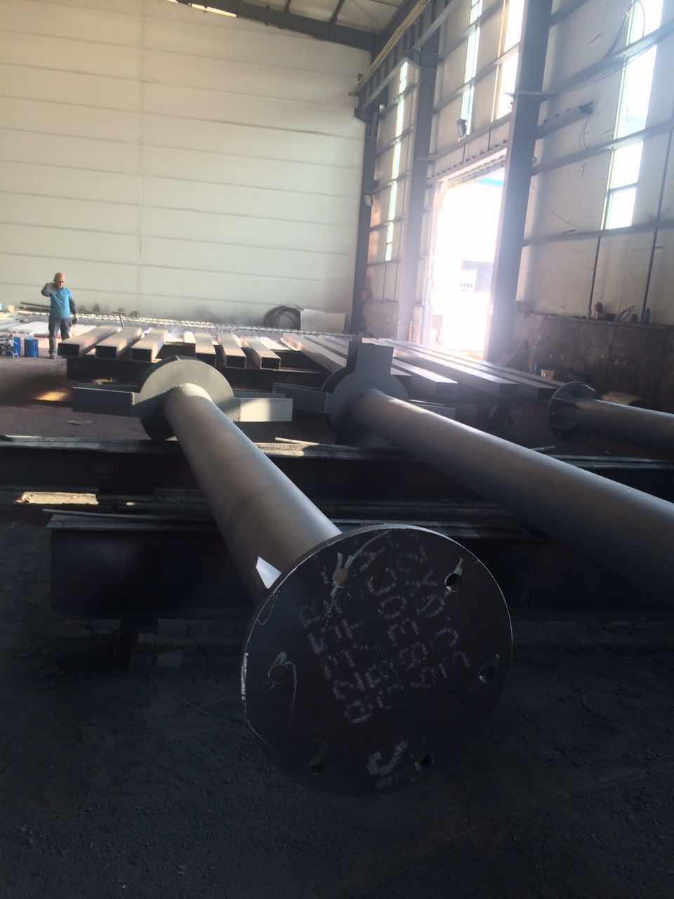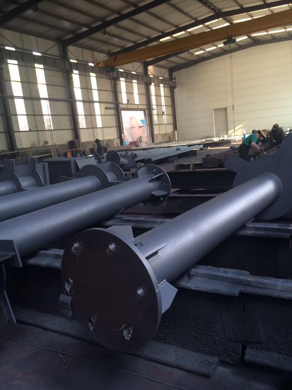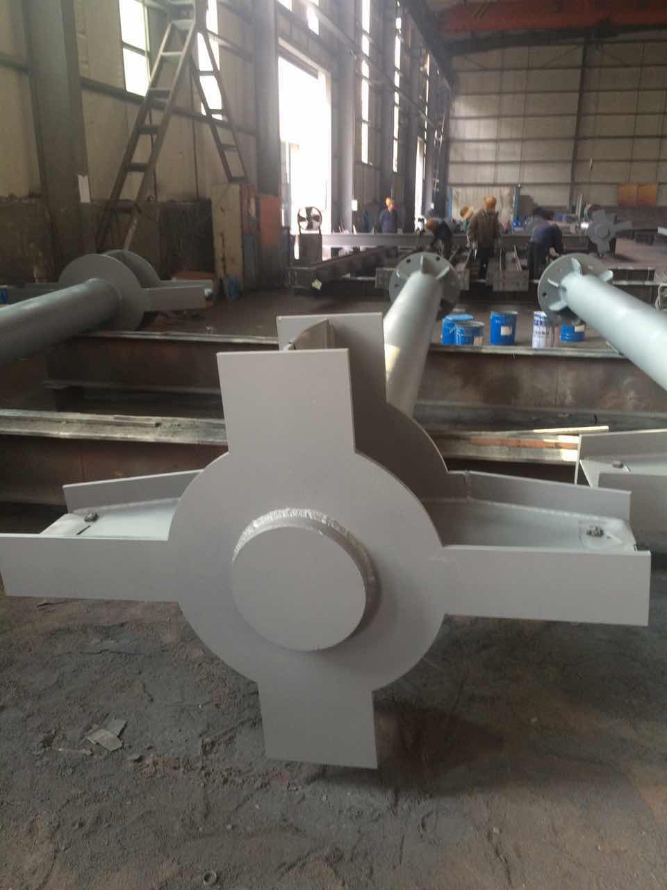 9月份我公司承接了內蒙古博物館項目的鋼結構制作工程,博物館圓管柱制作難度大,四向牛腿雙向角度,上下相貫口,柱腳板與圓管不在同一圓心,柱腳安裝孔無規則,裝配難度大。