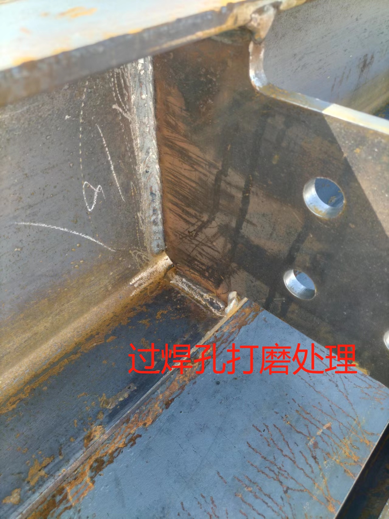 此加工構件客戶提出了極為嚴格生產要求,鉚焊工藝標準很高,清渣打磨要做到干凈美觀,第三方探傷機構要求每根構件,每道焊縫進行檢測。